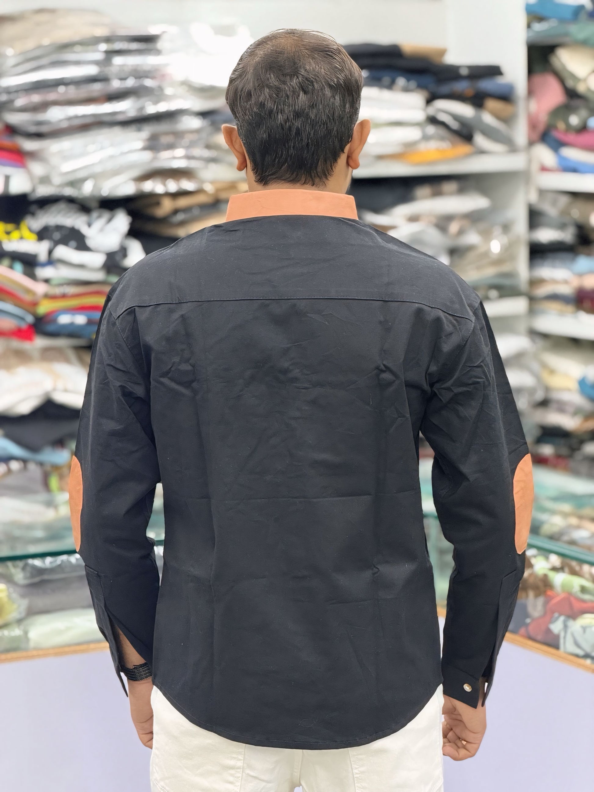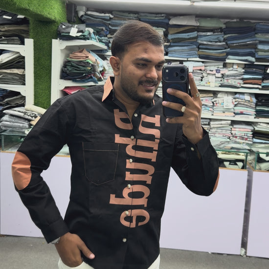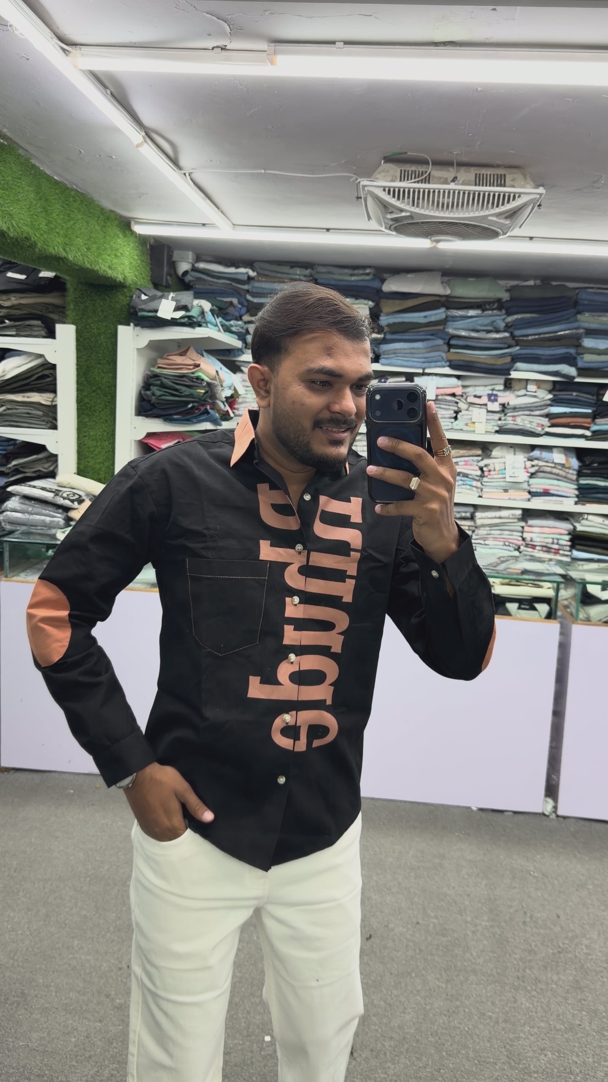 Upgrade your wardrobe with this Men’s Black Typography Print Shirt, designed for those who love modern streetwear fashion with a bold edge. Featuring a striking “future” text print and contrast peach detailing, this shirt delivers a unique and eye-catching look.