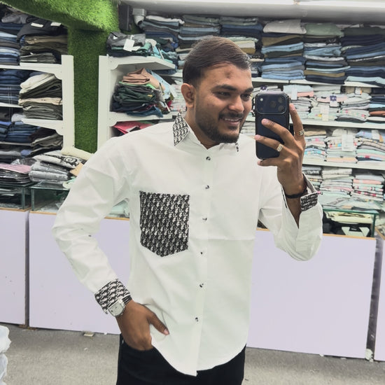 Upgrade your wardrobe with this Men’s White Cotton Shirt featuring designer pattern detailing on the collar, cuffs, and pocket. Crafted for men who appreciate luxury-inspired fashion with minimal aesthetics, this shirt offers a perfect blend of class and modern style.